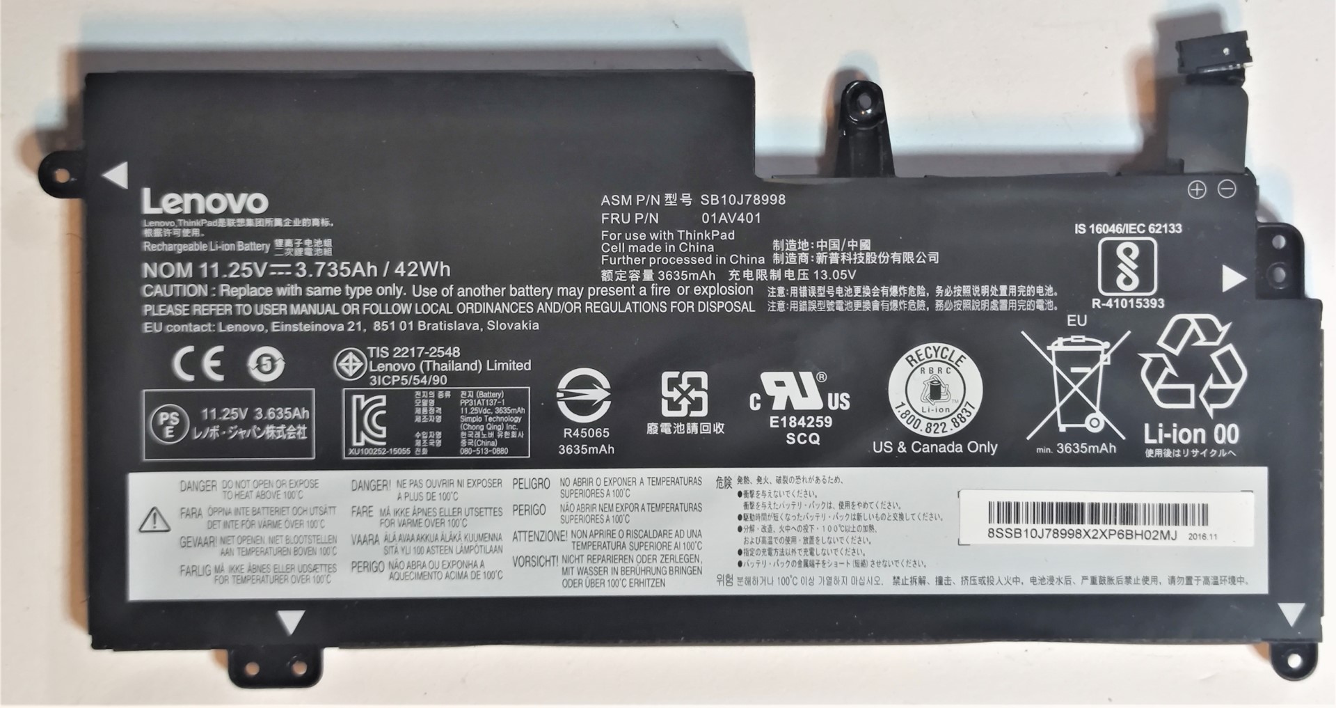BATERIA AKKU BATTERY 11.25V 42Wh LENOVO THINKPAD 13 GEN 2ND 20GK 20GJ S2