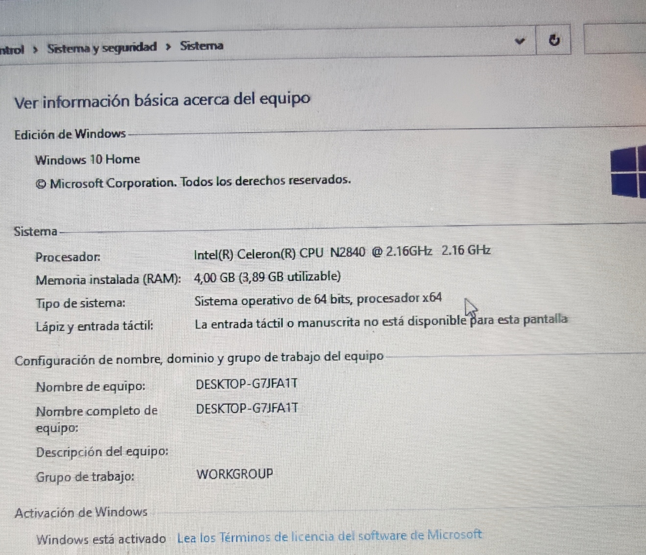 Procesador Intel Celeron CPU N2840 a 2.16GHZ