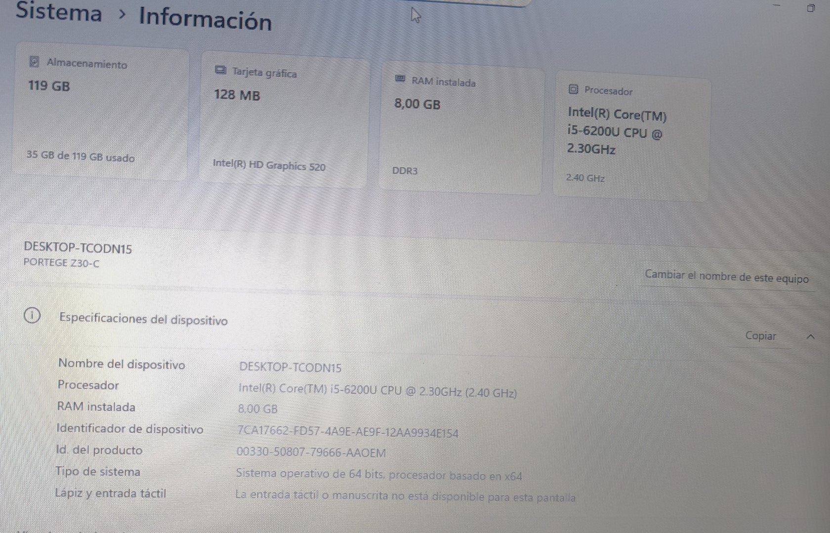 Procesador Intel core i5-6200U 2.30GHZ