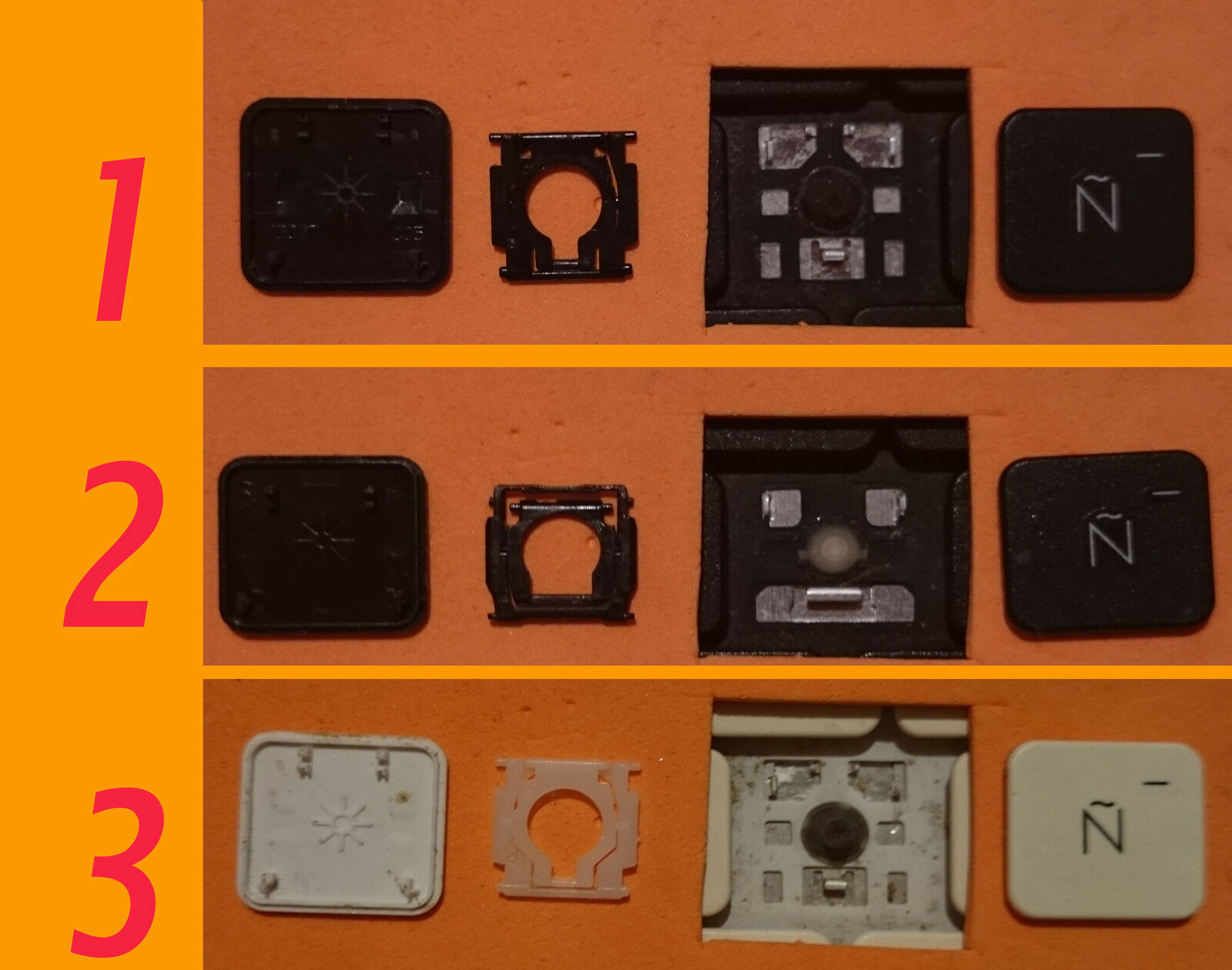 Cada paquete contiene la Tecla + la conexión (Soporte) + Plástico central.